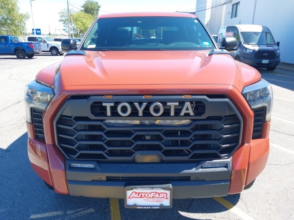 Turn heads on and off the road with this 2024 Toyota Tundra Hybrid TRD Pro in an eye-catching Burnt Orange finish. Built for performance and luxury, this rugged yet refined 4WD truck is powered by a 3.4L V6 hybrid engine that delivers impressive power and efficiency. Equipped with BBS 18" black forged aluminum wheels, a sport-tuned suspension, and TRD Pro performance upgrades, its ready for any terrain. The aggressive stance is complemented by body-color bumpers, LED fog lights, and a power moonroof, while the CARFAX One-Owner status ensures peace of mind. Plus, it's AutoFair Certified for added warranty coverage.