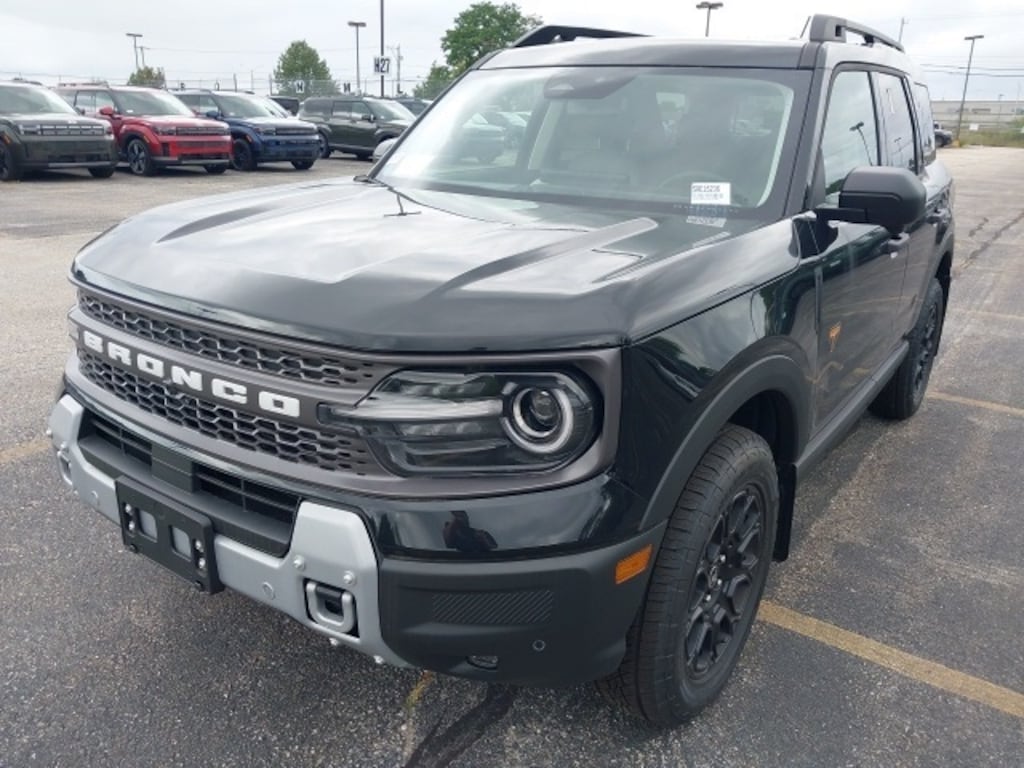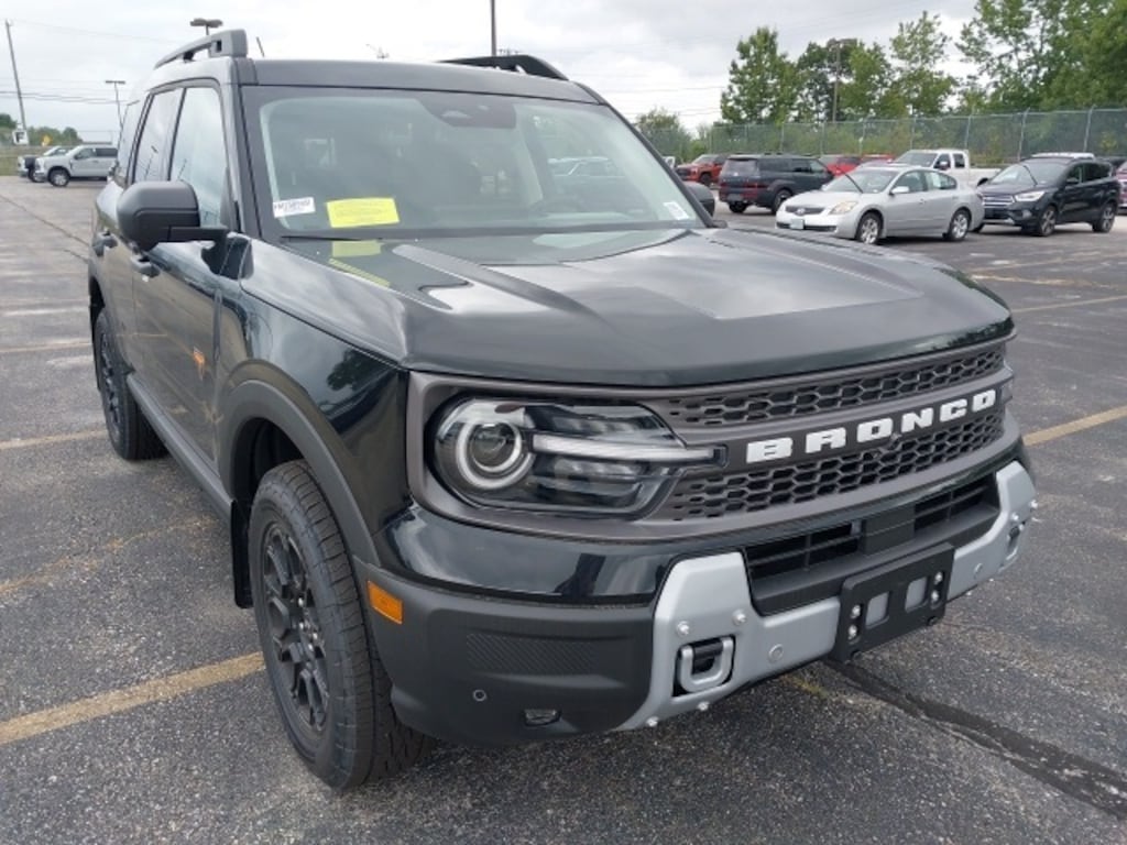 Rugged capability meets premium comfort in the 2025 Ford Bronco Sport Badlands, designed for off-road adventures without compromising on style or tech. Equipped with four-wheel disc brakes, four-wheel independent suspension, and advanced traction control, the Badlands trim is built to conquer challenging terrain with confidence. The 2.0L EcoBoost engine delivers power when you need it, while the Badlands Tech Package brings a suite of enhancements, including the B&O Sound System by Bang & Olufsen, Connected Navigation, and SYNC 4 with Enhanced Voice Recognition, ensuring you're as connected as you are capable. The 17" matte black-painted aluminum wheels, front and rear splash guards, and fully automatic LED headlights further emphasize its bold, trail-ready stance.