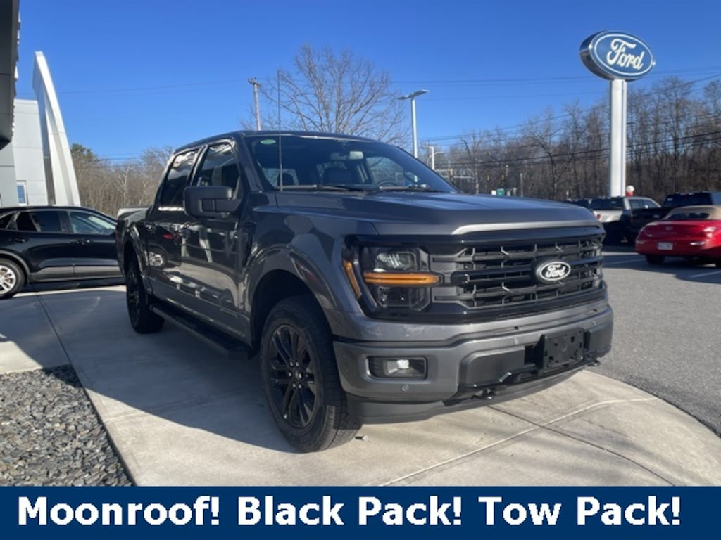 360 Degree Camera, 400W Cab & Bed Outlets, 6 Speakers, 6" Angular Bright Anodized Step Bar, 6" Black Running Boards, Adaptive Cruise Control w/Stop & Go, Auto High-beam Headlights, Auto-Dimming Rear-View Mirror, Black Exterior Badging, Black Grille, Black Painted Grille w/Chrome Center Bar, Body-Color Front & Rear Bumpers, Chrome Door & Tailgate Handles, Chrome Single-Tip Exhaust, Cloth 40/Console/40 Front Seats, Connected Navigation, Console Worksurface, Dark Interior Appliques, Delay-off headlights, Driver State Detection, Dual Exhaust w/Black Tips, Dual-Zone Electronic Automatic Temperature Control, Electronic Locking w/3.73 Axle Ratio, Equipment Group 303A High, Evasive Steering Assist, Floor Shifter, Fog Lamps, Ford Co-Pilot360 Assist 2.0, Front Parking Sensors, Fully automatic headlights, Gray Box Side Decal, Heated Front Seats, Integrated Trailer Brake Controller, Intelligent Access w/Push Button Start, Mobile Office Package, Partitioned Lockable Rear Storage, Power Glass Heated Sideview Mirrors, Power-Adjustable Pedals, Power-Sliding Rear Window, Radio data system, Radio: B&O Sound System by Bang & Olufsen, Remote Start System w/Remote Tailgate Release, SYNC 4 w/Enhanced Voice Recognition, Tow/Haul Package, Towing Technology, Twin Panel Moonroof, Wheels: 20" Chrome-Like PVD, Wheels: 20" Gloss Black Painted Aluminum, Wrapped Steering Wheel, XLT Black Appearance Package Plus.