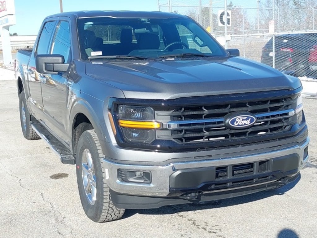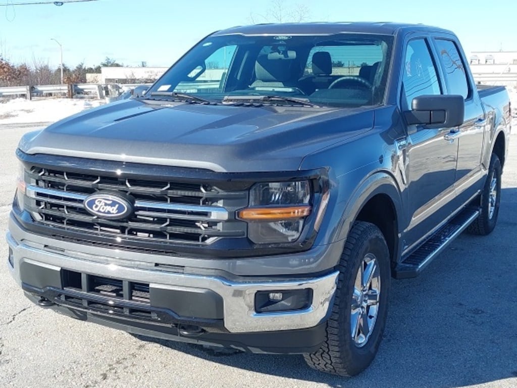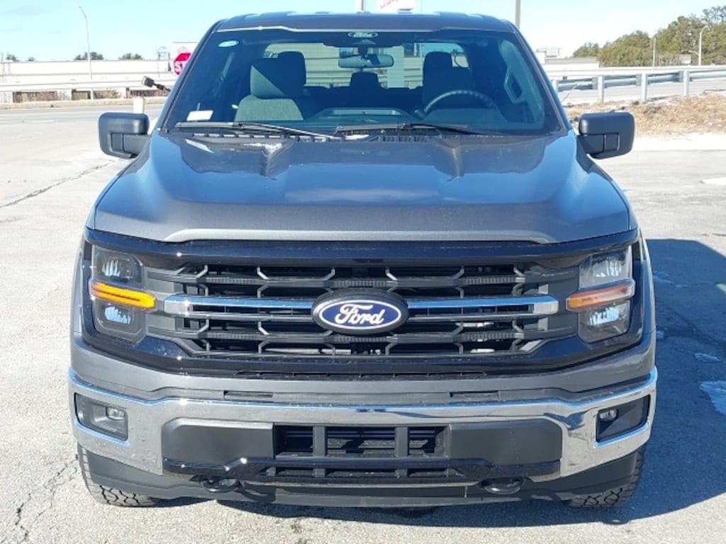 The 2025 Ford F-150 XLT is a rugged yet refined truck that balances performance and comfort, making it ideal for both work and leisure. With its robust 3.55 axle ratio and powerful 4-wheel disc brakes, this vehicle delivers impressive handling and stopping power, ensuring confidence whether navigating city streets or off-road terrains. The striking exterior features a black-painted grille with a chrome center bar, complemented by chrome bumpers, door handles, and exhaust tips, giving it a bold, commanding presence on the road. The inclusion of a 6" angular bright anodized step bar enhances accessibility, while the chrome wheels shine bright, further accentuating this powerful machine's aesthetic appeal.